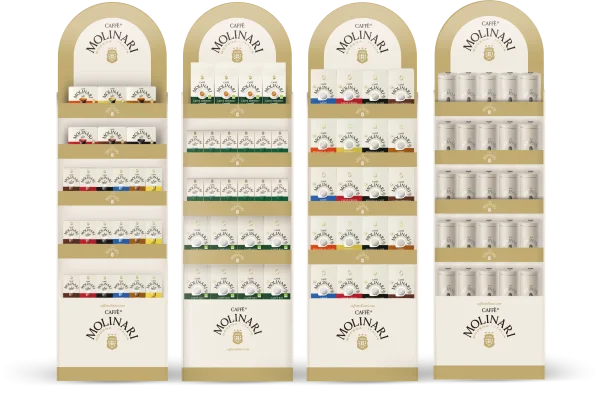 Caffè Molinari permette di scegliere i prodotti da esporre in un display dallo stile inconfondibile per facilitare la scelta del consumatore e favorire le vendite.